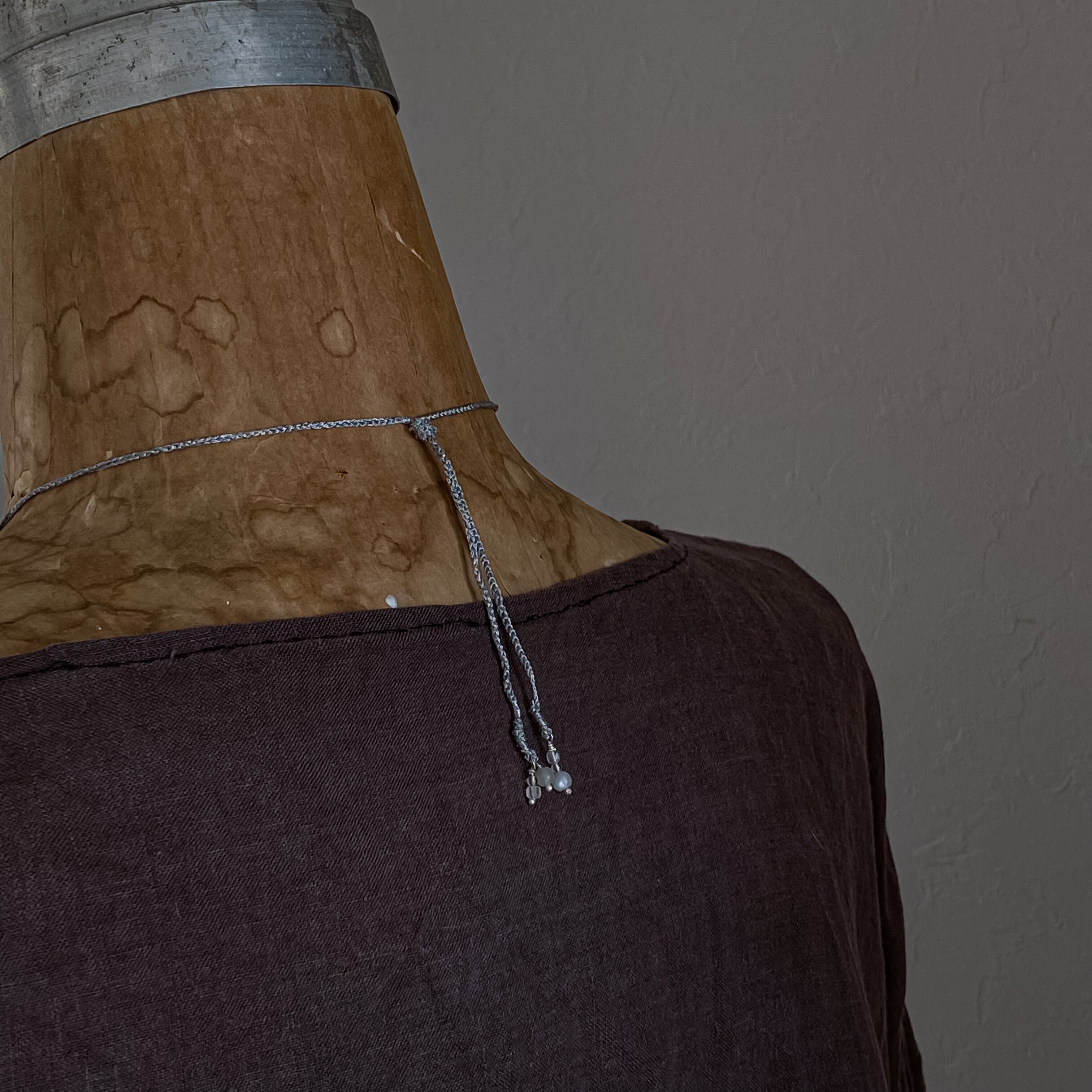 シルクで編んだオリジナルの紐に下げています。