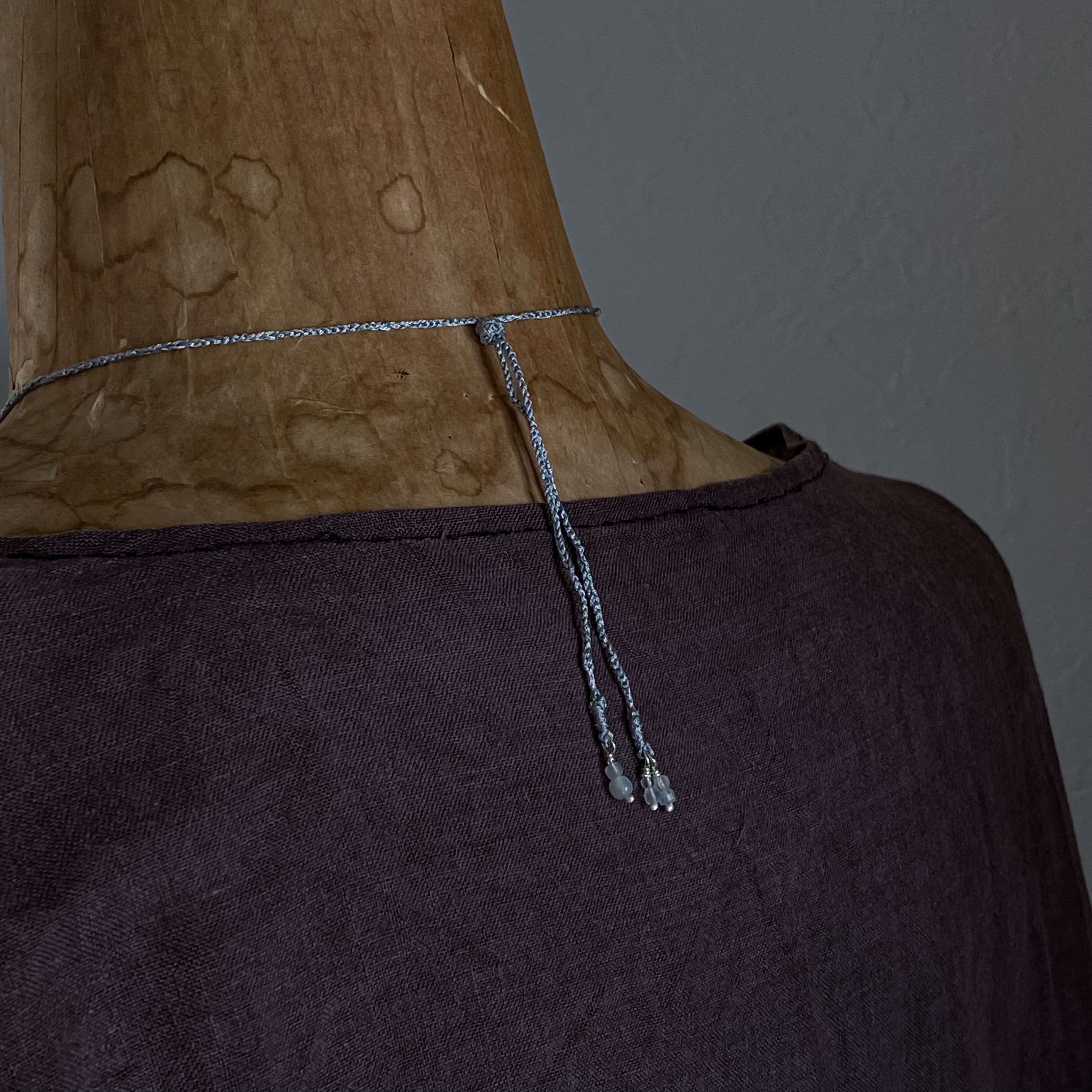 首回りの紐は同素材のアジャストパーツで長さの調節ができます。