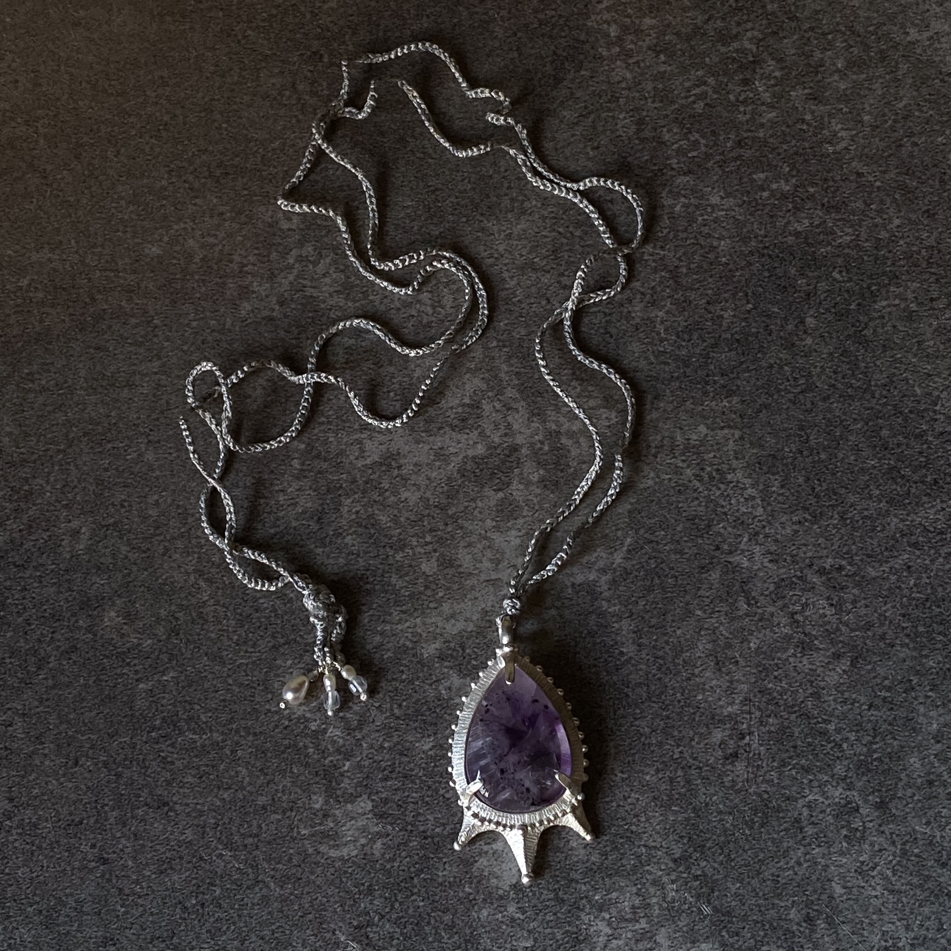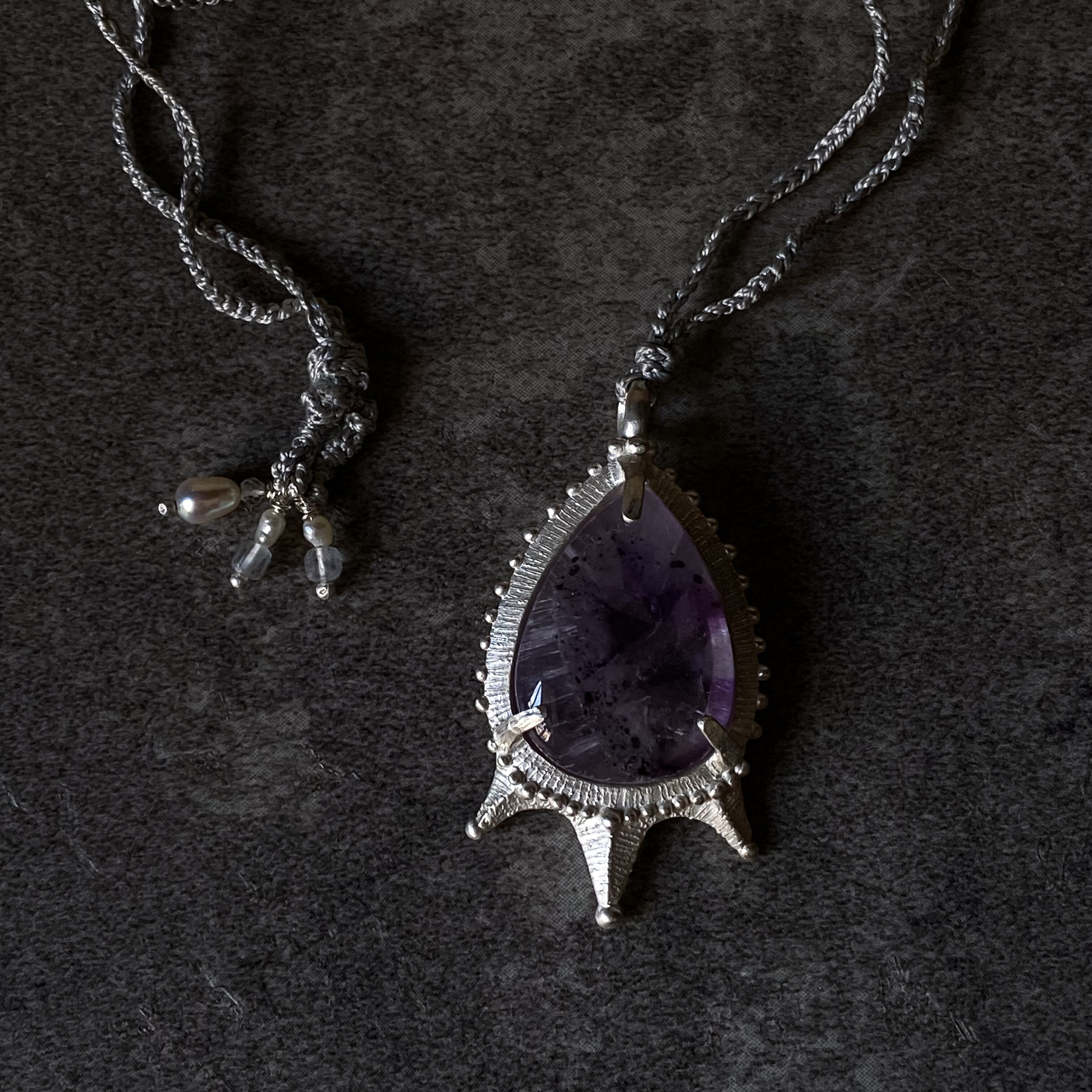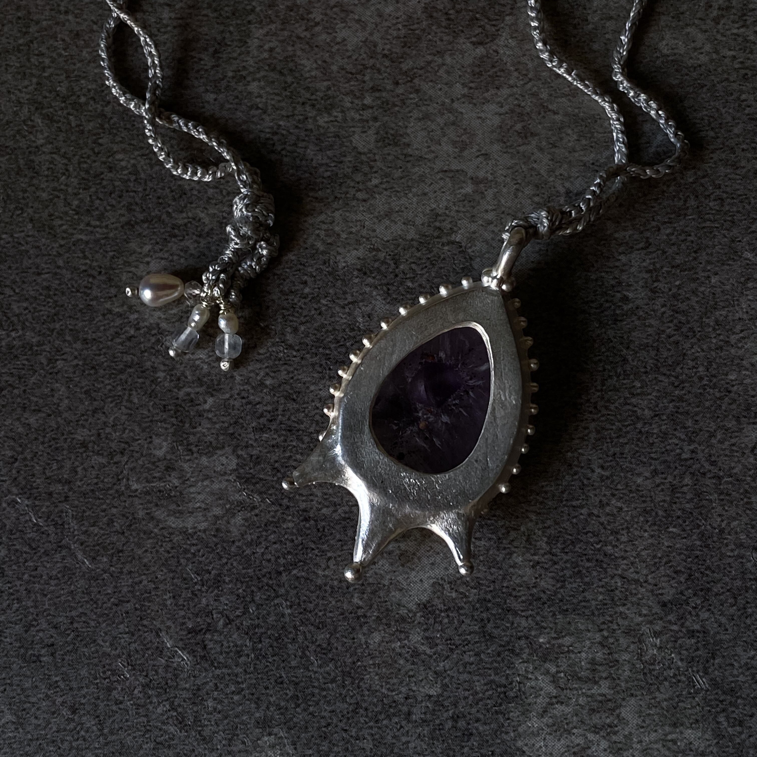 素材:925silver アメジスト 淡水パール ムーンストーン silk