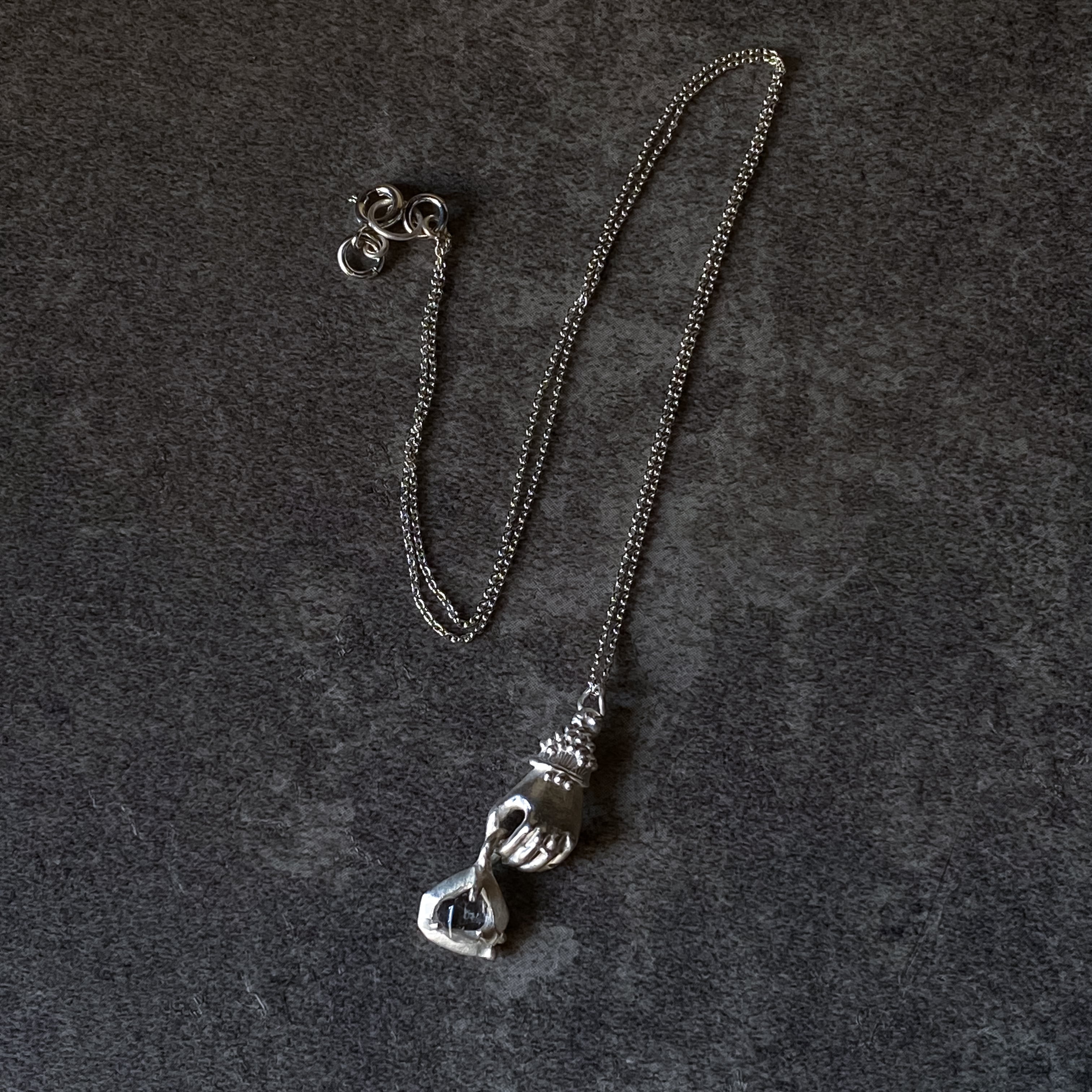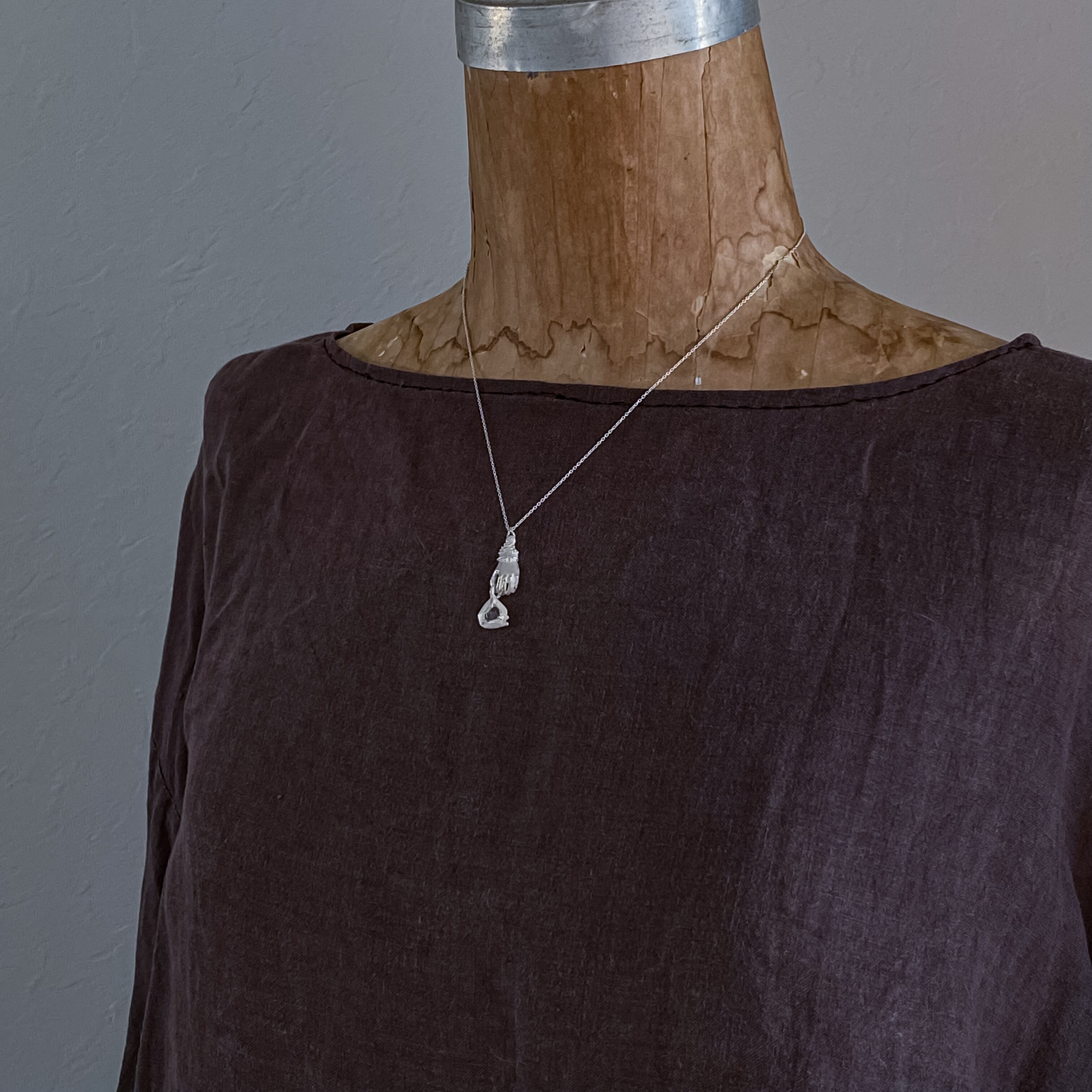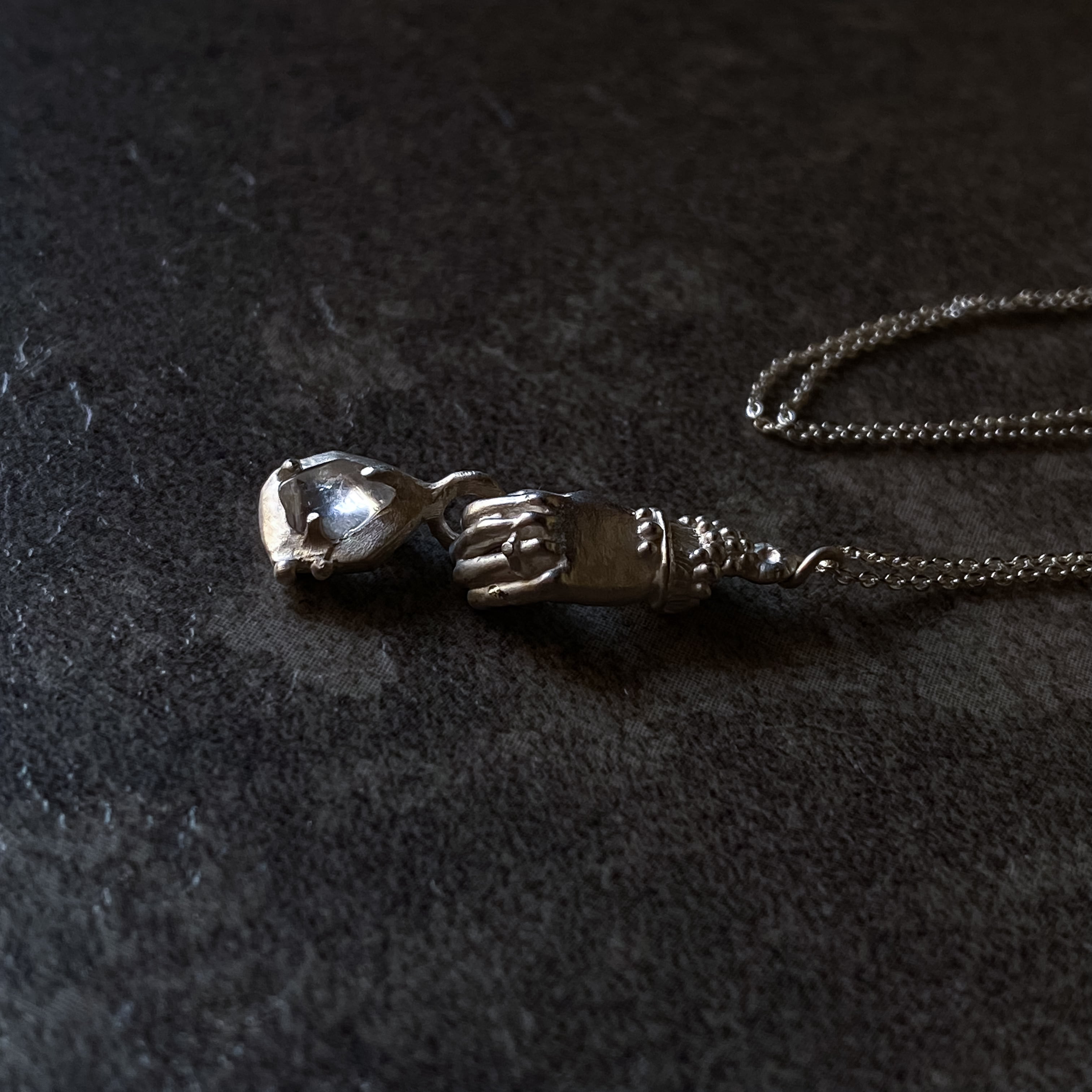 手をモチーフにしたネックレスです。