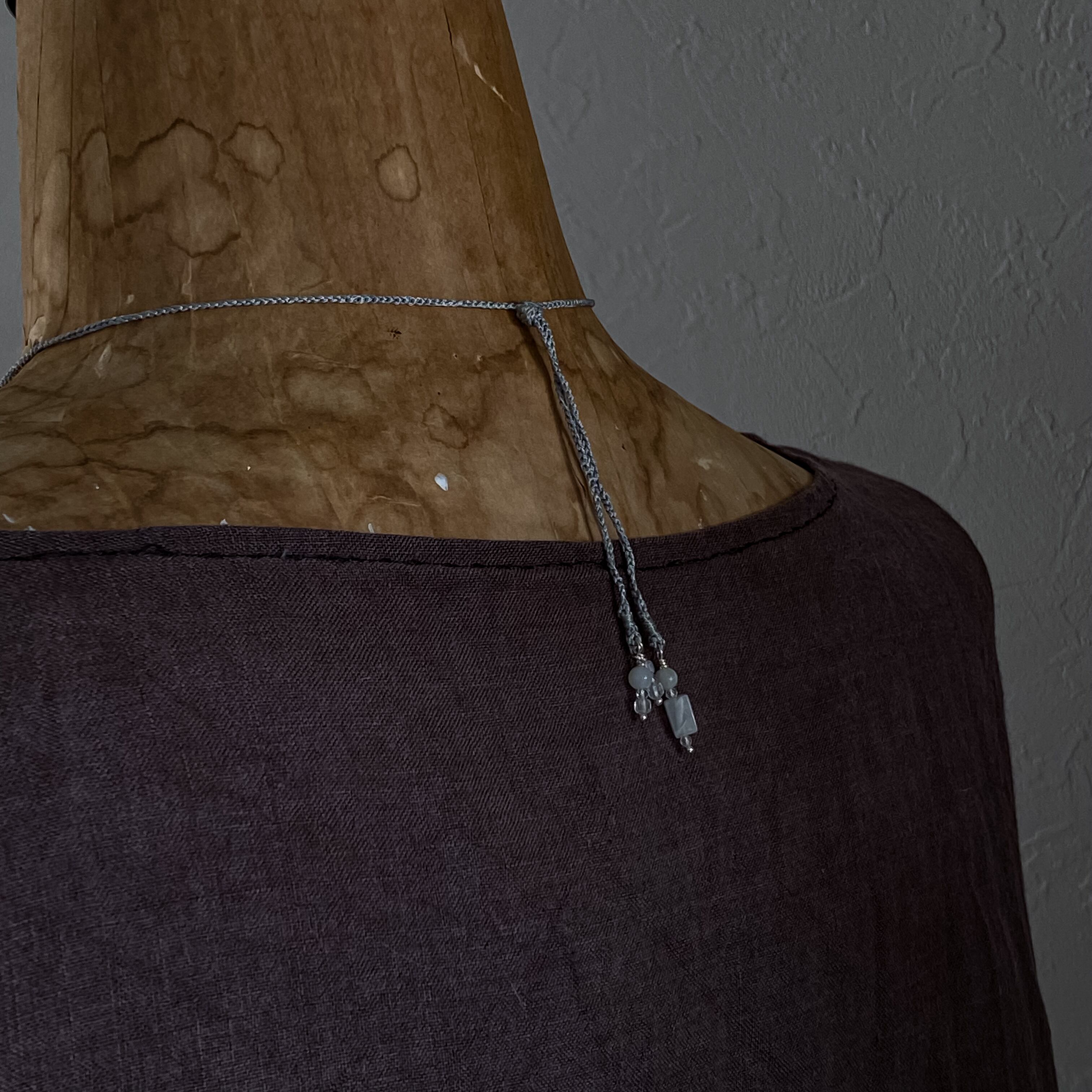やらかな優しいひかりを放つ石と素材が首元を彩ってくれるアイテムです。