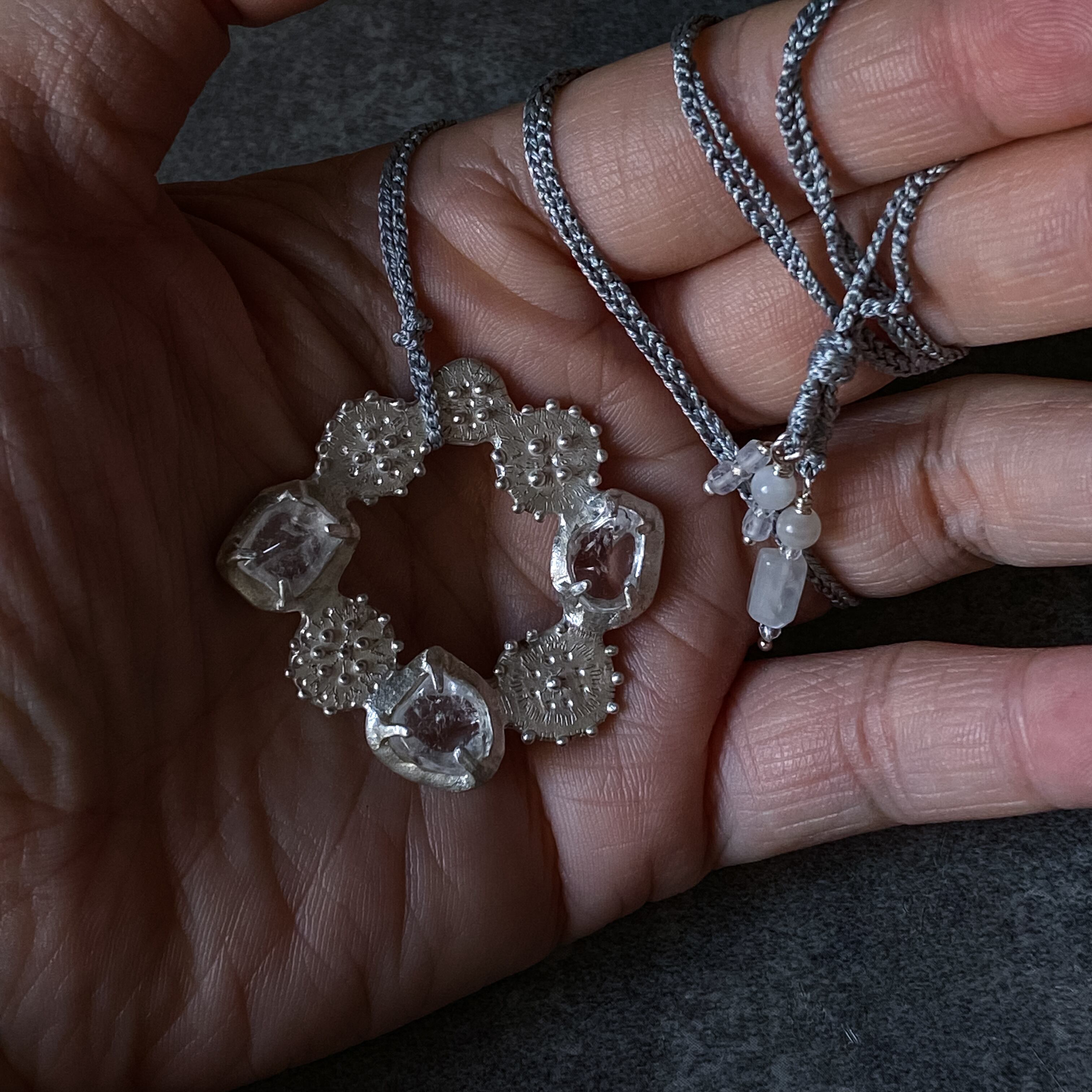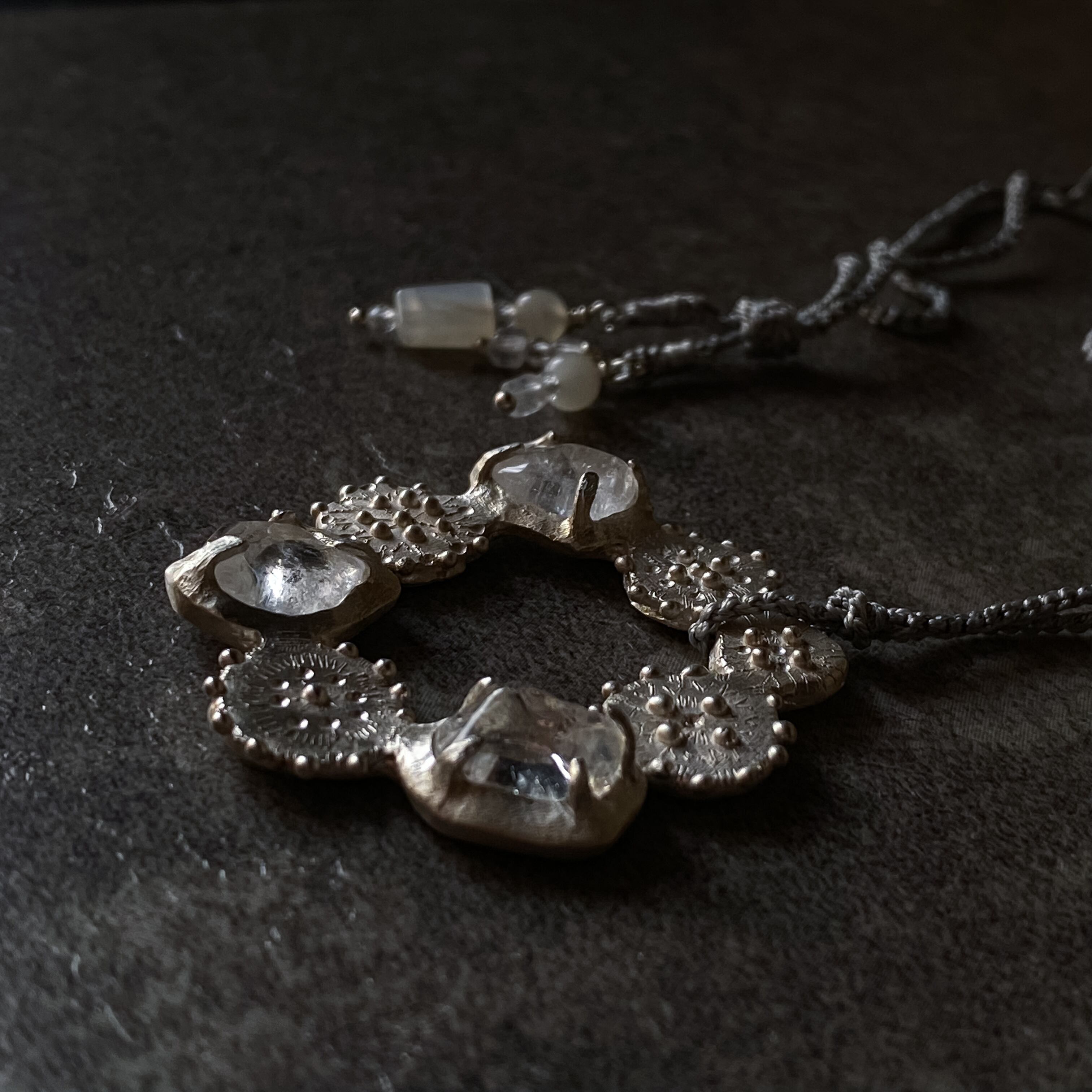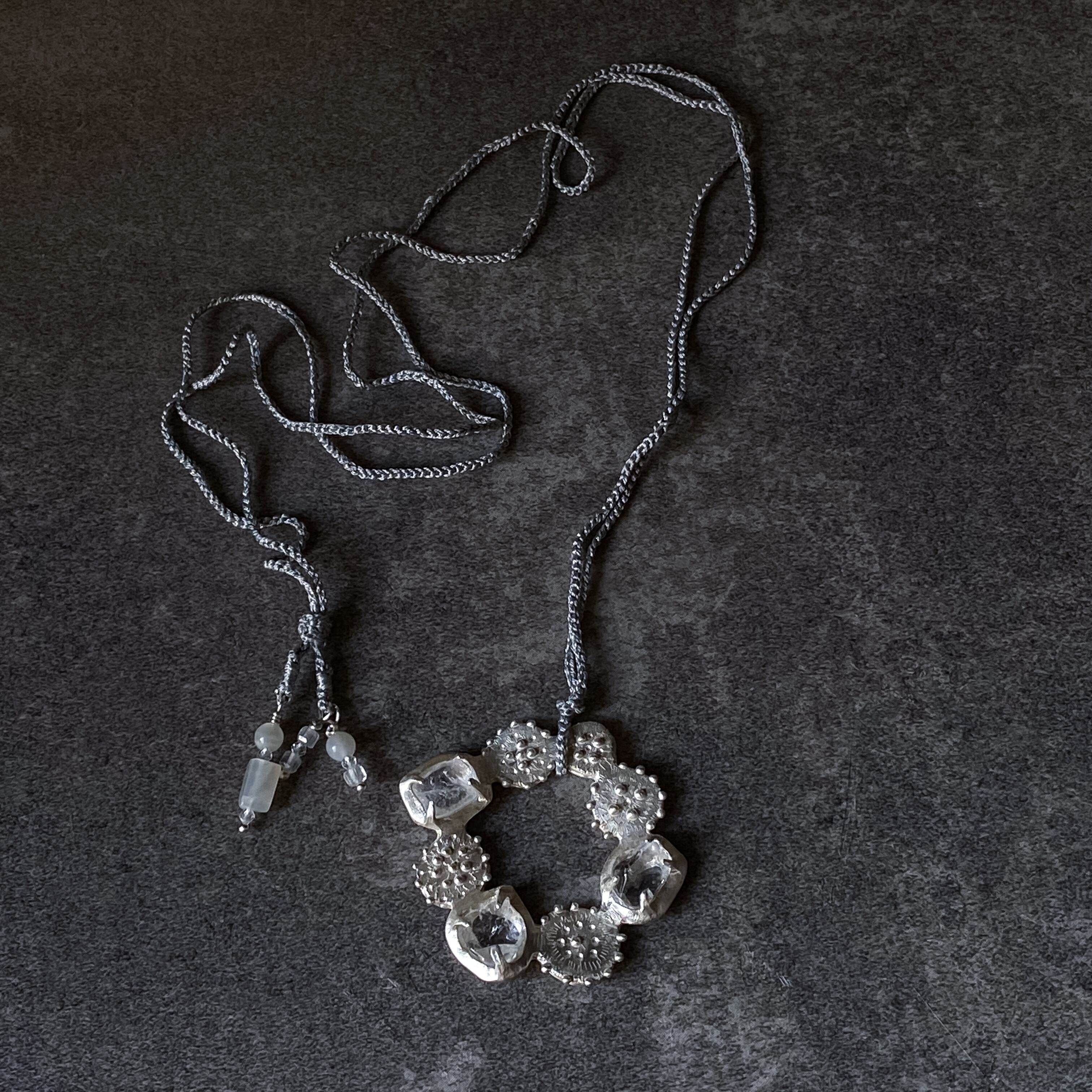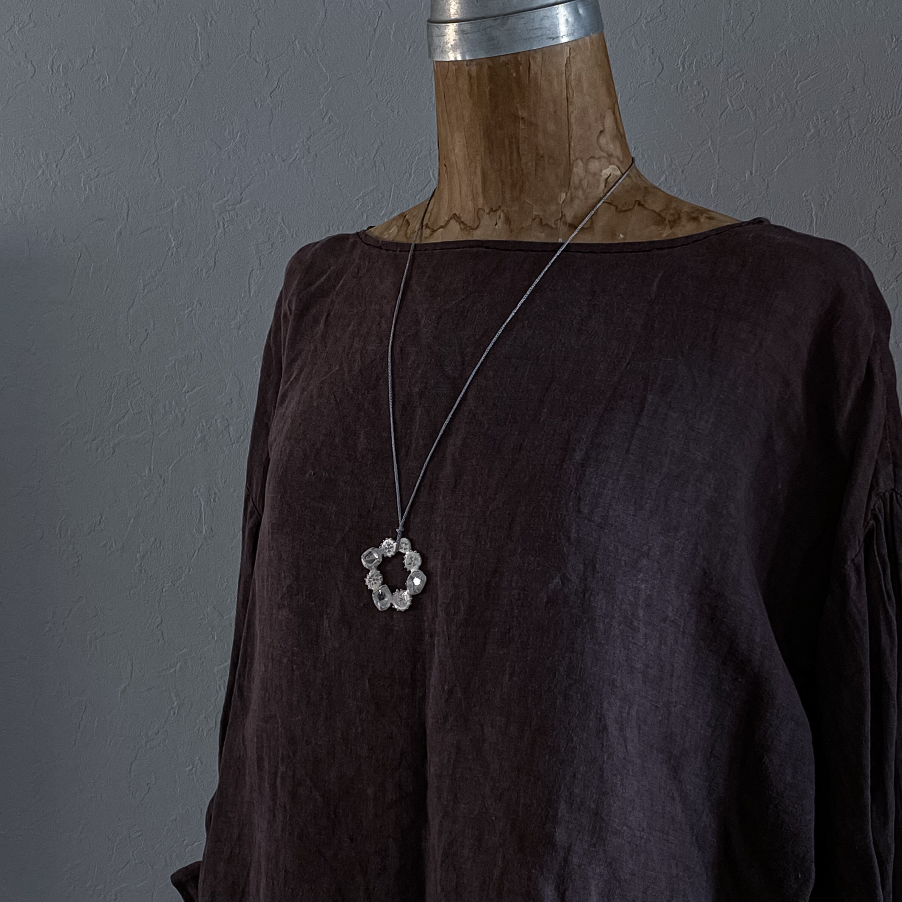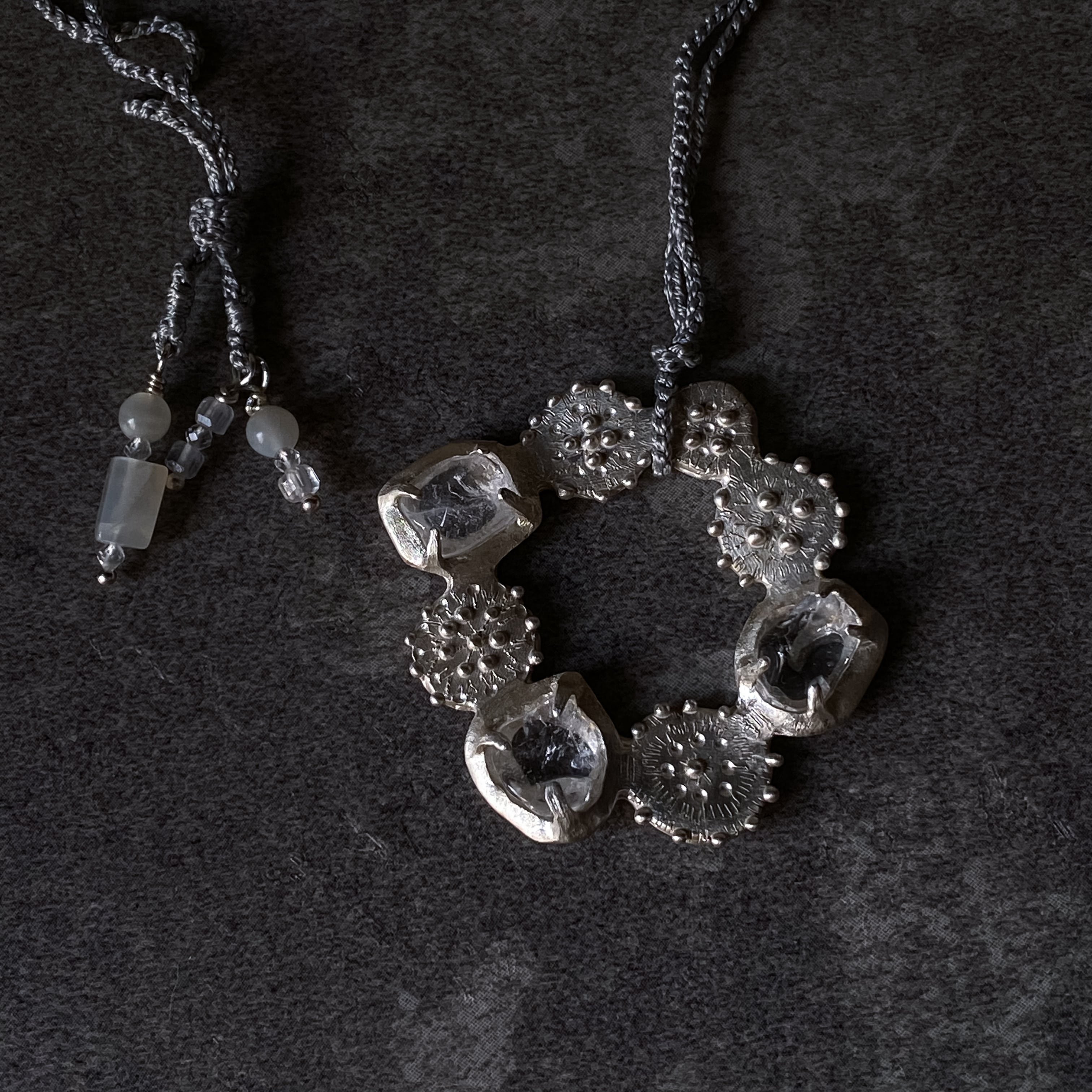 小さなトップのネックレスを一点物シリーズとしてこれまで制作してきましたが、大きなものもつくってみようとサークル状の大きなトップパーツを制作しました。